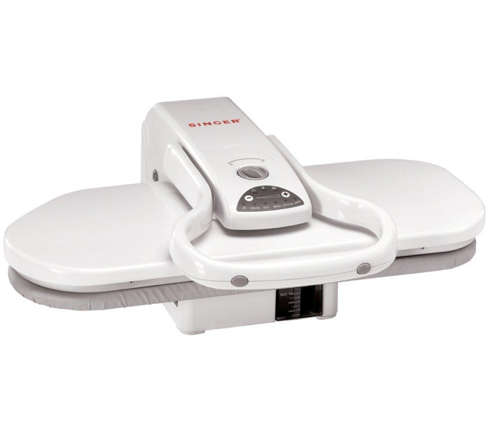 Suitable for all ironable garmentsCut down on your chores with the Singer ESP-2 Steam Press. This handy laundry device is ideal for all types of clothing and fabrics, from denim to your curtains. High pressure pressing Using pressure to reduce wrinkles in one easy step, the ESP2 Steam Press delivers heat and steam that cuts down on ironing times. It has a wide opening that is ideal for bulky items and multiple garments, and provides a larger surface area than other irons, letting you get your ironing done quickly. Delivering 30 g of steam per minute, you can eliminate creases from your clothes quickly and efficiently. Extra bursts of steam can be summoned using the touch control, or you can cut out the steam and use it as a dry iron. You can control the temperature to suit all materials and garment types. It's easy to see when the press is ready to use thanks to the temperature ready indicator, and a 300 ml water tank means that you can get plenty of ironing done before you need to refill. Safety first You don't need to worry about accidently leaving the ESP 2 switched on as it features an automatic safety shut off feature. This operates whether the steam press is open or closed. It can also be locked closed for storage.