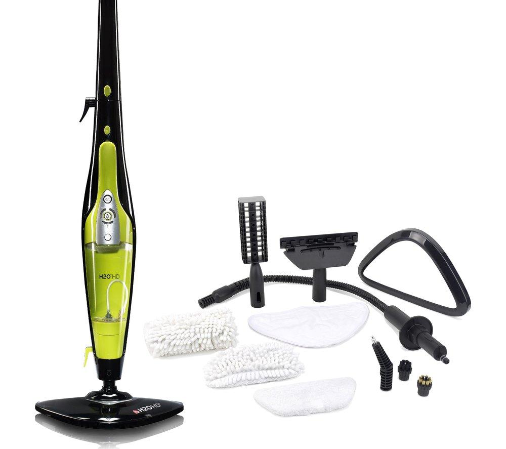 Clean your home quickly and efficiently with the advanced H2O HD Steam Mop.HD cleaningThis High Definition steam cleaning system is designed to make cleaning less of a chore - the removable water tank is easy to fill, while the digital steam control lets you adjust the steam flow so you'll always have the right amount of power for every task.Heating up in just 30 seconds, the HD Steam Cleaner offers 15 minutes of cleaning time thanks to the large 450 ml water tank, meaning less time spent refilling.MultiuseAn extra large 360º cleaning head allows you to cover more surface area, while the quick release unit detaches from the mop at a touch of a button for easy hand-held cleaning.A hygienic and safe way to clean your home, the HD Steam Mop helps to sanitise and deodorise your floors, carpets, upholstery and surfaces.The five-in-one H2O HD Steam Mop conveniently features a folding handle and a power cord hook for convenient storage.