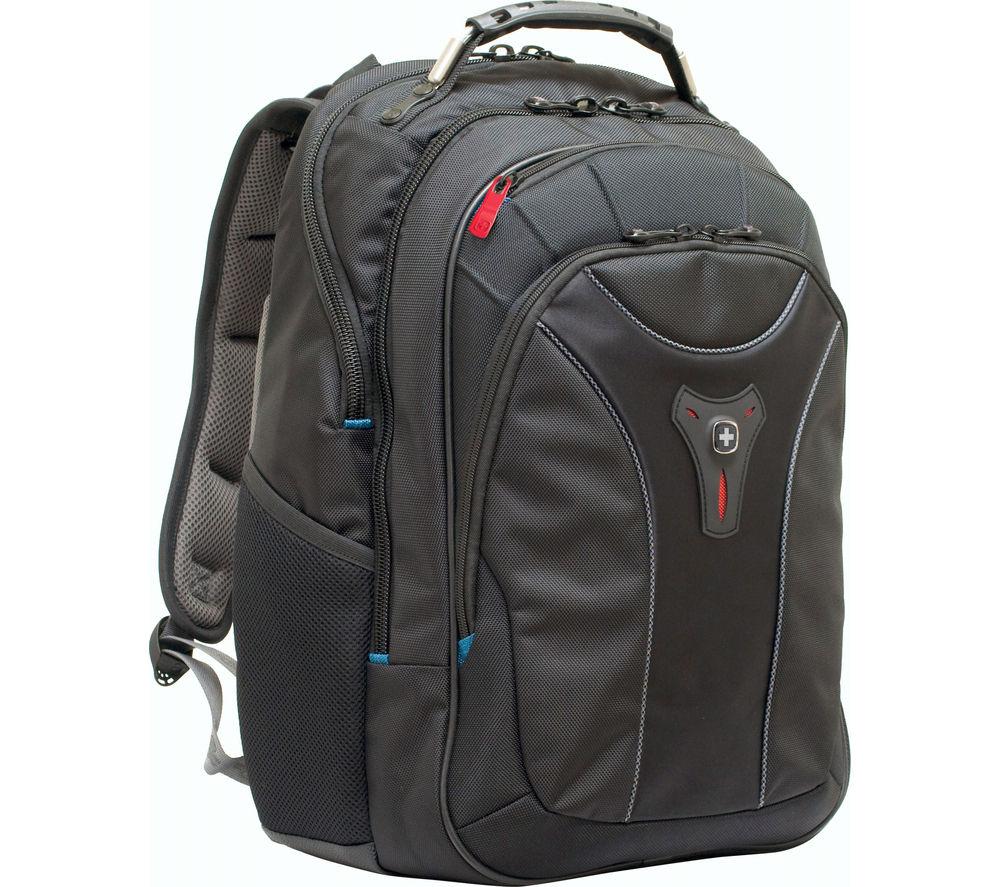 "Transport your laptop or MacBook along with your computing essentials with the comfortable and durable Wenger Carbon 17"" Laptop Backpack.Plenty of pocketsA padded compartment inside the Wenger Carbon Backpack allows you to store a laptop with up to a 17"" screen safe and readily available for all of your daily needs.With a range of additional pockets inside the backpack, you have quick access to essentials such as your water bottle or laptop charger.Designed for comfortShock absorbing shoulder straps and a padded back panel on the Wenger Carbon Backpack provide you with long-lasting comfort so you can wear it all day.What's more, the backpack boasts an interior base platform for added stability and peace of mind when transporting your computing devices and accessories.Complete with an integrated trolley handle sleeve, the Wenger Carbon 17"" Laptop Backpack offers safer storage that you can trust."