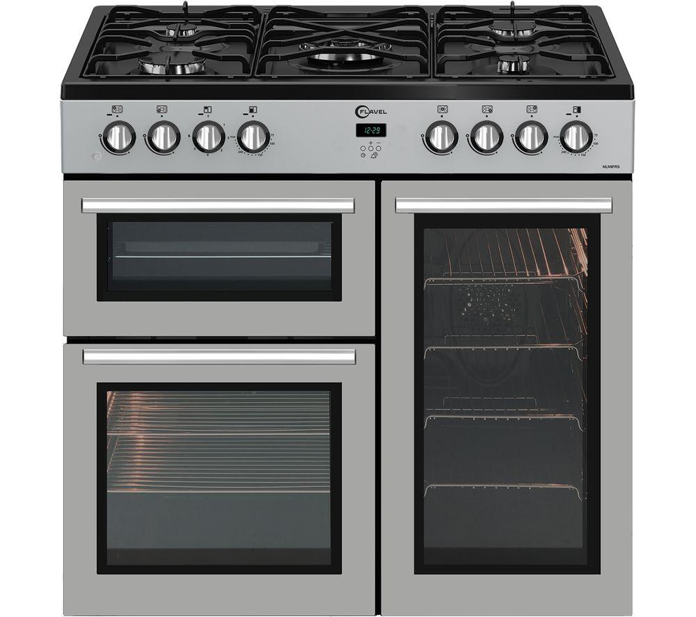 Top features: - Flexible cooking with two ovens & separate grill - Five burner gas hob accommodates multiple pans - Perfectly cooked dishes with LED timer and glass doors Flexible cookingGreat for large households, the Flavel MLN9FRS 90 cm Dual Fuel Range Cooker offers flexible cooking with large and medium electric fan ovens, and a separate grill - perfect for a family Sunday roast or dinner party with friends.Five burner gas hobThe five burner gas hob means you can have multiple pans on the go at the same time with plenty of space for larger pots and pans.Perfectly cooked dishesKeep track of your dishes with the handy LED timer with minute minder, while the triple and double glazed glass doors with interior light let you keep an eye on your food.__________GAS INSTALLATION: This product should be installed by a qualified gas safe engineer, such as one of our Knowhow experts.ELECTRICAL INSTALLATION: This product requires hardwiring and should be installed by a qualified engineer, such as one of our Knowhow experts.
