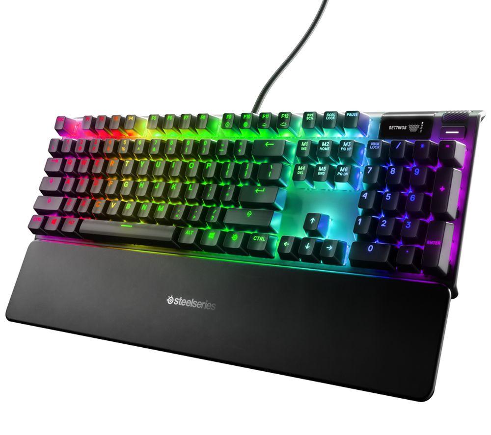 Your new favourite keyboardLevel up your gaming with the SteelSeries Apex 7 Mechanical Gaming Keyboard. It offers maximum versatility, durability and style to match your high-end gaming station.The Apex 7 offers all the features of the top line Pro, the only difference being the switches and the price tag. This keyboard comes with red switches, which means a linear and quiet key response.Macros for victoryWith the SteelSeries Engine software, you can personalize all the keys, not only the six dedicated ones. Text-based or key combinations, they all can be easily programmed on the go. Choose from five pre-loaded presets or make your own and change them without tabbing out.Smart display, snazzy lightsThe integrated OLED Smart Display will help you immediately adjust volume and light or change profiles. It can also show input from games and apps, like your current KDA in CS:GO, who's speaking on Discord or what song's playing. Use the clickable metal roller next to it to browse menus.Get creative with lighting effect and map your own RGB light regimes. Choose from 16.8 million colours per each key, shine your favourite shade of colour or use gradual and dynamic colour changes.Built to lastThe Apex 7 is built to last and will easily survive an occasional fit of gaming rage. Like the Pro series, it comes with the virtually unbreakable Series 5000 frame made of aircraft-grade aluminium alloy.The switches are also guaranteed to work for a minimum of 50 million key presses. Anti-ghosting is also included, so when you press a key, it's pressed for sure. And if you've got a long gaming session ahead of you, the detachable soft touch wrist rest will keep you comfy.