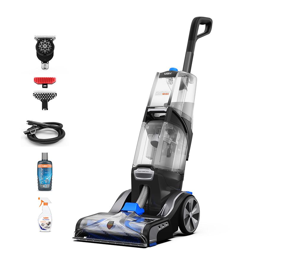 "Killls over 99% of bacteriaGive your carpets a makeover with the Vax Platinum SmartWash 1-1-142257 Upright Carpet Cleaner. When used with Vax Platinum Antibacterial Solution (included), the Platinum SmartWash kills over 99% over of bacteria that can cause bad odours in your carpets. The Platinum SmartWash uses 2 FlexForce brush bars that lift all the trapped and embedded dirt from your carpets, leaving it clean and fresh.Motion Sense TechnologyWhen you push forwards the Platinum SmartWash is washing, when you pull back, it automatically starts drying. If you want to dry your carpets faster, simply switch to Dry-Only mode and have your carpets dried in an hour.Stretch hose and SpinScrub handtoolThis Vax Platinum SmartWash does not stop at your carpets. Equipped with a 2.5 m long stretch hose and innovative SpinScrub hand tool, you can clean upholstery, stairs and car interiors with ease. An extra-large water tank and proven cleaning solutions make the process easy, while the six-year guarantee backs up the promise of quality results.Why we love it""Two brushbars are better than one! This carpet cleaner uses dual FlexForce brushbars that get right into your carpet's fibres and lift deeply embedded dirt for spotless results."" - Andrew, Product Copywriter"