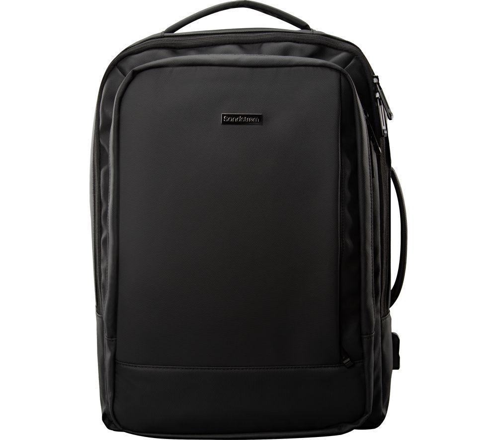"Good to know - This Sandstrom backpack is made to snugly fit your 15.6"" laptop - It's waterproof so your tech will remain dry - no rain check needed - It comfortably slips on your luggage, thanks to its trolley sleeve - Forgot to charge your phone? The USB port will be handy - The dual handles let you carry it however you want - It's expansion enclosure makes your bag even more roomy by increasing storage space"