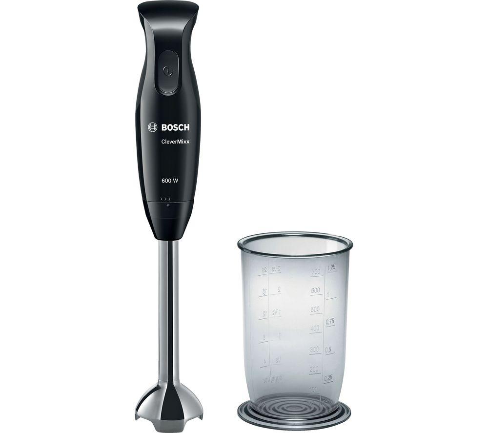 Comes with mixing/measuring beakerThe Bosch CleverMixx MSM2610BGB Hand Blender features a powerful 600 W motor and a turbo setting for when you need a burst of power. It's all packed into a compact design, and there's an anti-slip handle. Plus, the blender comes with a mixing beaker for easy measuring and mixing of small quantities.Easy to use and storeThe AntiSplash technology means things won't get messy in the kitchen while you're blending. Easy to use and easy to store, the Bosch CleverMixx Hand Blender gives you consistently great results every time you're preparing ingredients.