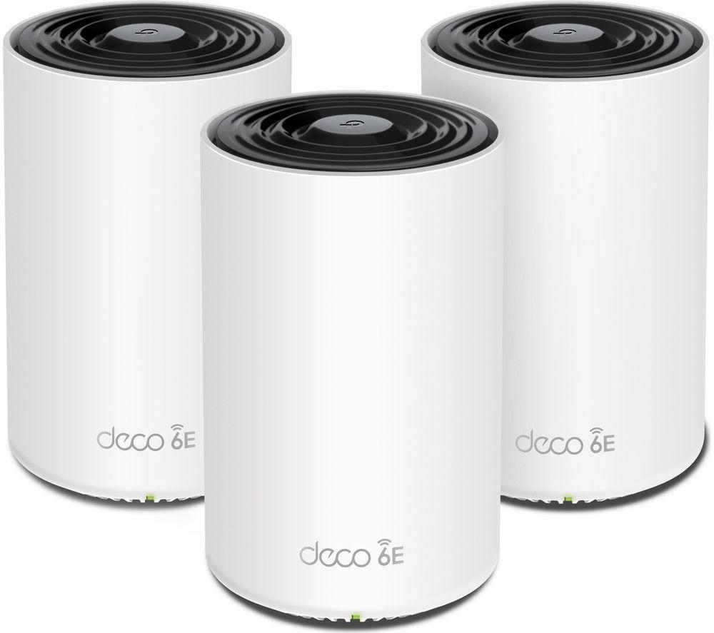 Fill every corner of your home with super-fast WiFi with the Deco system. It uses AI-driven mesh technology to get rid of any dead zones - it learns exactly what you need. The WiFi 6E standard is perfect for smart households with tons of internet-hungry gadgets. Plus, you won't need to switch networks as you move from room-to-room - each unit works seamlessly together under one WiFi name. Good to know - This triple pack covers up to 670 m2 - that's enough for a large house, and you can always add more Decos - For reliable internet across your phone, laptop, TV and console, Tri-band WiFi 6E lets you connect hundreds of demanding devices - Stream safely with TP-Link HomeShield - it detects any online threats to keep your information secure - Parental controls let you block inappropriate content and manage how long the kids spend online - Download the Deco app to test your connection or manage your network from the sofa