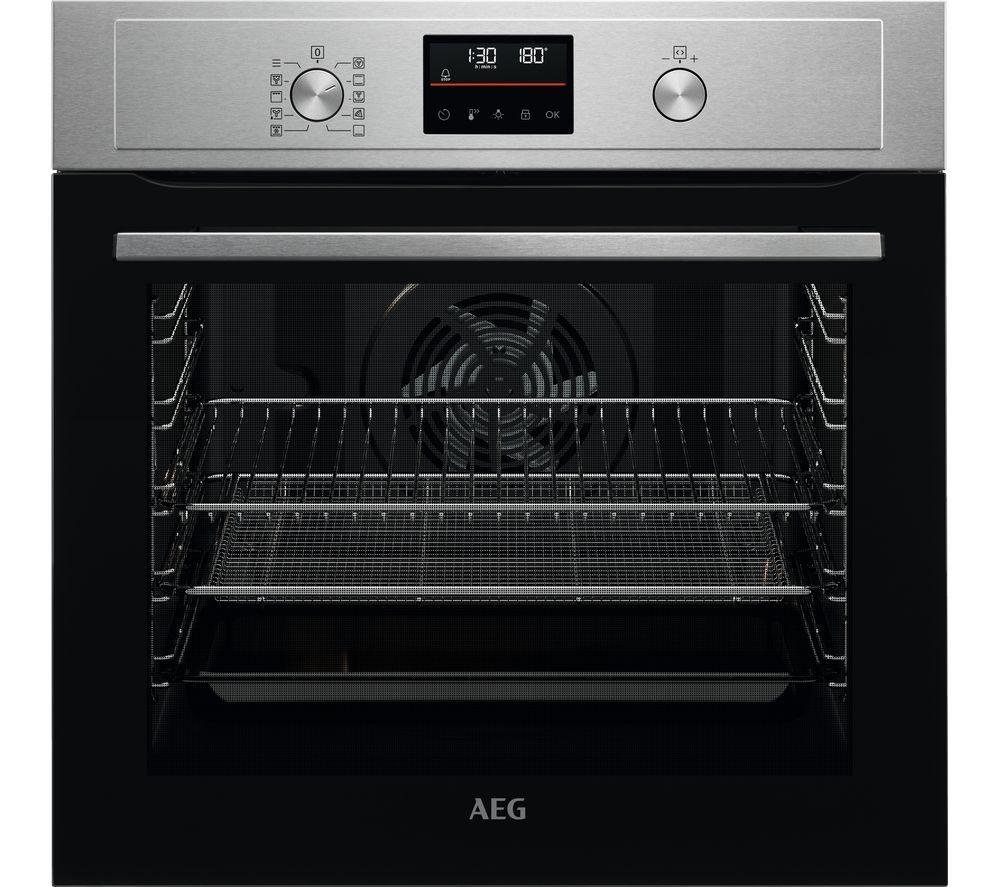 Meal for one or a full-on family feast? This AEG oven's Hot Air function cooks every meal evenly, no matter where you place it. It circulates hot air around the whole oven which means no cold spots or soggy bottoms. There's also an addition heating ring for consistent, corner-to-corner cooking, even when every shelf is loaded up. Perfect for the Sunday roast and all the trimmings. And even the clean up's a piece of cake. The Pyrolytic cleaning function turns burnt on food, dirt and grease into ash so you can just wipe it away. No elbow grease required.Good to know- The LED display with touch buttons lets you quickly adjust the temperature and cooking time with no fiddly menus- Fancy a quick snack? The fixed rate grill is perfect for crispy bacon or adding a golden top to your lasagne- Choose from 10 cooking functions including Oven Defrost, Pizza and Conventional_________________PLEASE NOTE:ELECTRICAL INSTALLATION: This product requires professional installation to a dedicated circuit by a qualified installer, such as one of our Tech Experts. Our expert installers may be able to install to a dedicated cooker circuit (identified by a big red cooker switch) if you do not have a 16 Amp supply in your home.