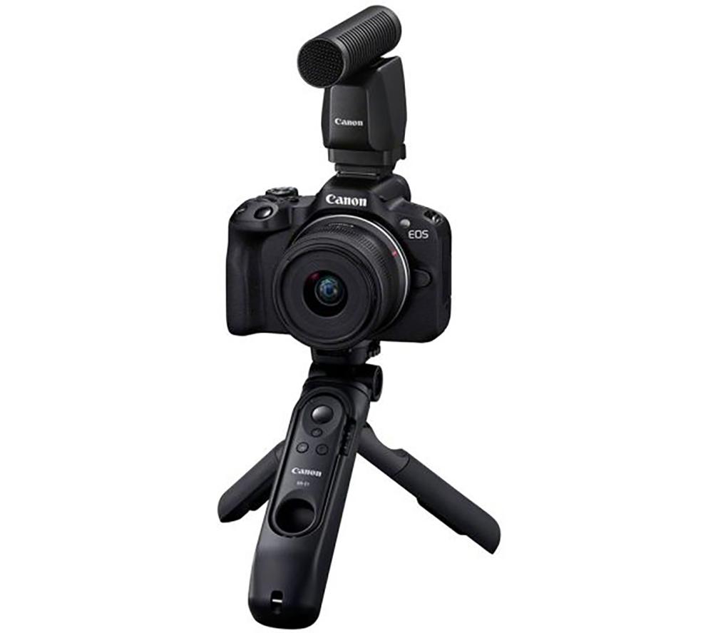 "Stand out in your videos - not on the street. The Canon EOS R50 is small enough to be discreet and light enough to carry around anywhere. Shoot vlogs on the fly or get creative with a timelapse. The R50 has a few tricks up its sleeve too. It's smart enough to know when it's shooting vertical or horizontal - super handy for livestreaming. Creative bracketing gives you multiple edits for each image you take. The camera does all the hard work - just choose your favourite effect. And with a vari-angle touchscreen, you can work all the angles. Creating new content has never been so easy. Good to know- Start creating content straight out the box with the included grip, mic, and stabilised lens- Its Dual Pixel CMOS AF II recognises and tracks subjects super quickly for reliable focusing- It can capture bursts of up to 15 fps while keeping the subject sharply in focus - then it's just a case of picking the best shot- Powered by the DIGIC X processor, the camera is quick to focus and take the shot- It uses 6K oversampling to give you uncropped 4K videos packed with detail- Built-in WiFi makes it easy to transfer photos to your phone and shoot remotely- Use guide mode to learn the ropes, or get stuck in with customisable controls- A maximum ISO of 32,000 helps capture more detail and less noise in dark scenesWhy we love it""This all-in-one kit has everything you need to become a vlogging superstar! It includes a handy tripod grip so you can capture stable footage whether on-the-go or setting up shop up in front of a stunning location. And the stereo microphone attachment means you'll get crisp, professional sound no matter where you are."" - Elliot, Product Copywriter"