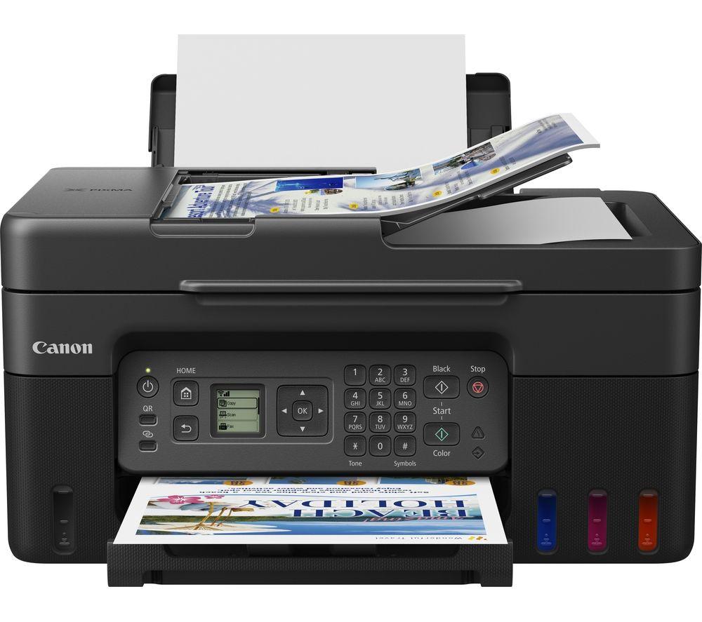 "Why waste time running around your office from one machine to another? With this Canon all-in-one printer you can print, copy, scan and even send faxes. You can print straight from your phone or computer using WiFi, Apple AirPrint or the Canon Print app. Plus, it prints up to 11 pages per minute and it can save you time and paper with an automatic 35-page document feeder.Good to know - With refillable ink tanks you can print up to 6,000 A4 pages with the black ink and 7,700 A4 pages in colour- Get creative with the Easy-PhotoPrint Editor and make custom cards, collages, stickers and more- Let your creativity run wild - you can print on magnetic, glossy and matte photo paper- The 1.35"" LCD display makes the printer easy to set up and control- There are 4 ink bottles in the box to get you printing straight away"