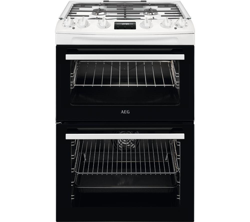 Enjoy delicious home-cooked dinners with this AEG cooker. Its two spacious ovens let you prepare multiple meals at the same time. It's really useful if everyone fancies something different for dinner. The heating ring gives you consistent, corner-to-corner cooking, even when every shelf is loaded up. Perfect for the Sunday roast and all the trimmings. And even the cleanup is a piece of cake. The Catalytic Cleaning function heats the oven to 250ºC to remove built up grease and cooking residue. There's no need to scrub and you can leave the harsh chemicals in the cupboard.Good to know- Its 4-burner gas hob gives you instant heat and lets you cook with multiple pots and pans- The timer turns the oven off when the set time has been reached - no more overcooking- The second oven doubles as a full-width grill for delicious bacon sarnies or cheese on toastGAS INSTALLATION: This product requires installation by a qualified gas safe engineer, such as one of our Tech Experts (available in the UK only).ELECTRICAL INSTALLATION: This product requires professional installation to a dedicated cooker circuit (identified by a big red cooker switch) by a qualified installer, such as one of our Tech Experts.