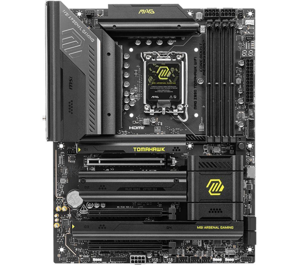 This MSI motherboard lets you build a powerful PC based on an Intel® Core™ Ultra Processors (series 2) and DDR5 RAM. Fancy a gaming rig or a content creator's workstation? Using the PCIe 5.0 expansion slot you can hook up most recent graphics cards for a truly high-end setup. The best thing about a PC is upgradeability. That's why this motherboard is seriously tough - the MSI Steel Armor reinforcement means you're set up for years of heavy use. Good to know - There's an Intel® WiFi 7 chip built-in, so you can expect fast and reliable wireless connectivity - The 5G Ethernet port is great for lightning fast wired internet connection - This motherboard has some serious IO connectivity - there are 7 USB-A ports and 3 USB Type-C port on the back - With the extended heatsink and M.2 Thermal Frozr Shield it's ready to keep cool even a high-performance setup - Choose water or fan cooling - this motherboard has connectors for either