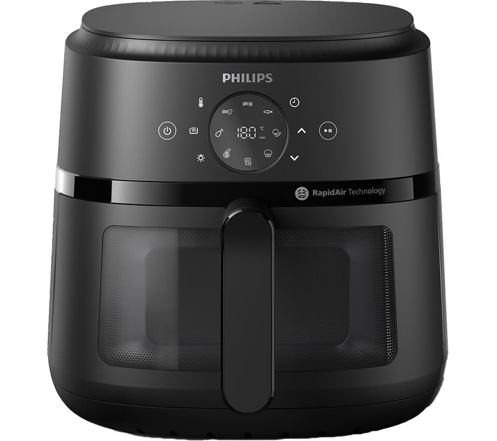 Enjoy perfectly cooked steaks, chips and more with this Philips air fryer. Its Rapid Air Technology blows hot air around your food as well as through it. It comes out crispy on the outside and tender on the inside. With its 13 preset functions, you can bring out your inner chef by roasting, grilling, baking and much more. And its 6.2 litre capacity is just right for a wholesome meal for a small family. Good to know - Enjoy French fries guilt-free - it uses 90% less fat than traditional fryers so your diet won't go out the window - Its non-stick basket is dishwasher safe so cleaning up after a meal is a breeze - Keep an eye on how your roast chicken is coming along with the handy viewing window - Running out of recipes? Get new ones on the HomeID App