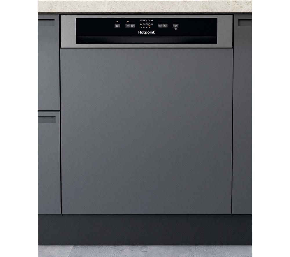 Good to know - This Hotpoint dishwasher has room for 14 place settings so it's great for medium-sized households and families - Wash a full load using only 9.5 litres of water - it's better for the planet and your pocket - In a hurry? Use the Rapid cycleand get your plates squeaky clean under just 30 minutes - Save water and energy when you wash smaller loads with the half load function - Make room for bulky pots and awkward baking trays with the adjustable baskets