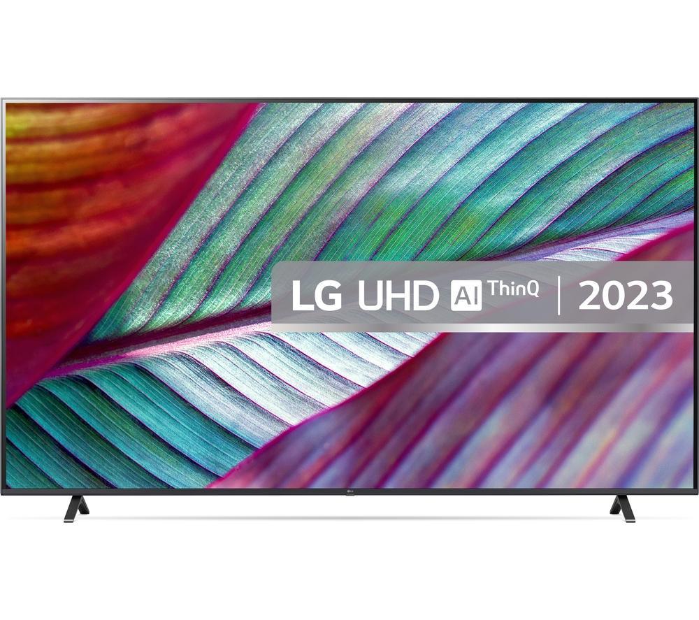 This LG UR78's 4K Ultra HD resolution means your favourite blockbusters look sharp and vibrant with incredible detail. Its High Dynamic Range (HDR) means more accurate colours, improved brightness levels and a deeper contrast. Those movie monsters just got a lot more menacing. With AI Sound, you'll feel the action all around you. It transforms 2-channel audio into virtual 5.1 surround sound for that movie theatre experience, only without the never-ending trailers. And Filmmaker Mode turns off any picture processing that can make movies look unnatural, so you can enjoy them the way the director intended.Good to know- Game Optimiser fine tunes your settings, so your games look and sound their best and run smoothly - your enemies don't stand a chance- Its modern, slim design will instantly become the focal point of your room and looks great on the wall or a TV cabinet- AI Acoustic Tuning uses the mic on your remote to tweak the TV's audio settings based on the size and shape of your room- Access all your favourite apps like Netflix, Prime Video, Disney+ and loads more via LG's webOS smart platform________Please note: Some apps & services (including tuner) are only available in the UK. Apps & services may be removed or no longer supported by third party content providers at any time. Some apps & services may not be available at launch and may require a firmware update before becoming available. Some services require an account and/or subscription fee.