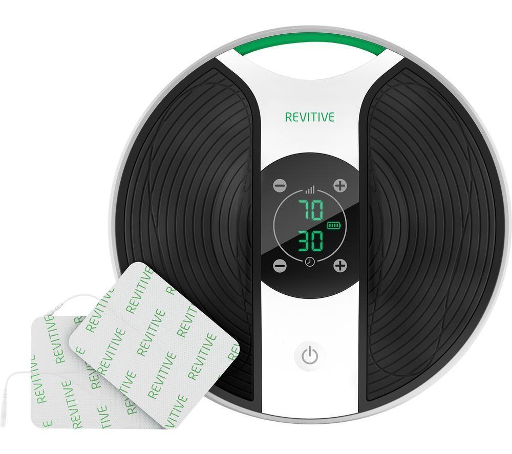 Don't let achy knees stop you from doing the things you love. Tackle knee pain with this Revitive Circulation Booster - it uses OxyWave technology to increase your blood-flow. It drives nutrient-rich, oxygenated blood to your legs and feet to reduce swelling, cramping, and to maintain good vein health. The Knee Program strengthens your thigh muscles that support your knees, which can help calm osteoarthritis flare-ups or joint pain after surgery. Good to know - Choose from 99 intensity levels to find the perfect setting to suit your needs - Its Dual Mode combines EMS and TENS technologies for targeted body pain management- The IsoRocker replicates heel-toe raises without added pressure of body weight to improve your ankle-joint movement- Soft silicone foot-pads make for great comfort during muscle stimulation- The battery offers up to 210 minutes of life, so you can have up to seven 30-minute sessions- It comes with a handy remote control, so you won't need to constantly bend down to change the intensity____________Please note: Revitive Medic Knee 5606-5574AQ-UK Circulation Booster should not be used by people who are:- Fitted with an electronic implant such as a pacemaker or AICD- Being treated for, or have the symptoms of, a deep vein thrombosis (DVT)- Pregnant