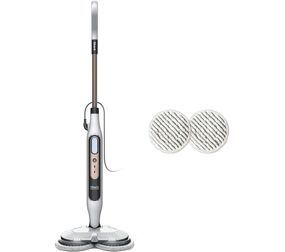 Keeping your floors clean when you live with kids and pets is not easy. This Shark mop steams and scrubs your floors at the same time with its rotating Power Pads. They spin 150 times a minute to lift dirt, dust and everyday grime. For those extra stubborn stains, the Steam Blaster mode cranks up the horsepower. Just pull the trigger and a powerful blast of steam gets to work removing 99.99% of bacteria. And it works a treat on all sealed floors including hardwood, marble, tile and stone, without leaving any streaks. Perfect for cleaning up after your little mess-makers.Good to know- Its LED headlights help show up hidden dirt so you won't miss anything as you go- Choose from 3 automatic steam modes depending on how dirty your floors are- The Dirt Grip pads are reusable and machine washable to cut down on waste- The 8 m cable lets you move easily from room to room without constantly unplugging- It stands up by itself so you won't have to lean it against a wall when you're taking a break