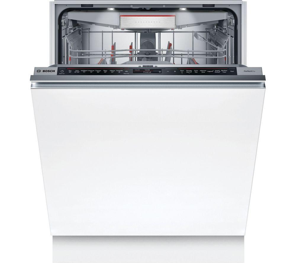 This Bosch Series 8 dishwasher's Silence 50 program reduces noise to a minimum so you can run it at night without interrupting your sweet dreams. It's WiFi-enabled so you can connect it to the Home Connect app and adjust settings from anywhere, or add your favourite programs. It's compatible with Amazon Alexa too, so you can control your dishwasher with your voice. And with the PerfectDry function you won't have to finish the job with a tea towel again. Good to know - When you need the dishes clean in a hurry, the SpeedPerfect function will have them ready in a jiffy - TimeLight projects a red light onto your floor so you know exactly when your dishes are done - The VarioDrawer and triple rackmatic system let you adjust the place setting to your needs so you can clean after big family dinners in one go - There's an Extra Clean Zone in the top-rack that uses 3 rotating nozzles for extra soaking - no more dried-on leftovers - The Intelligent program automatically adjusts its settings based on your rating in the Home Connect app to give you the best cleaning possible