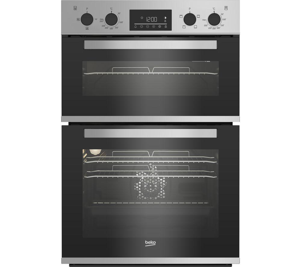 True Fan cooking The Beko Pro RecycledNet BBXDF22300S Electric Double Oven features True Fan cooking in the main oven, letting you roast and bake evenly for delicious results. With a heating element surrounding the fan, the oven delivers uniform heat throughout the cavity, so your favourite meal will be cooked quickly and efficiently. There's also a grill for adding the finishing touches to your meals, as well as a Defrost function which can help to save you time when you've forgotten to take that frozen chicken out of the freezer the night before. Steam cleaning Beko's SimplySteam cleaning takes the hassle out of cleaning the main oven. Just pour some water in the bottom tray and as the water evaporates, it will soften all the burnt-on food and grease inside the oven. This means you can spend less time scrubbing and more time doing the things you enjoy. The second oven has an enamel coating, which can easily be wiped down when the time comes to give your kitchen a clean. _________________ PLEASE NOTE: ELECTRICAL INSTALLATION: This product requires professional installation to a dedicated cooker circuit (identified by a big red cooker switch) by a qualified installer, such as one of our Currys experts.
