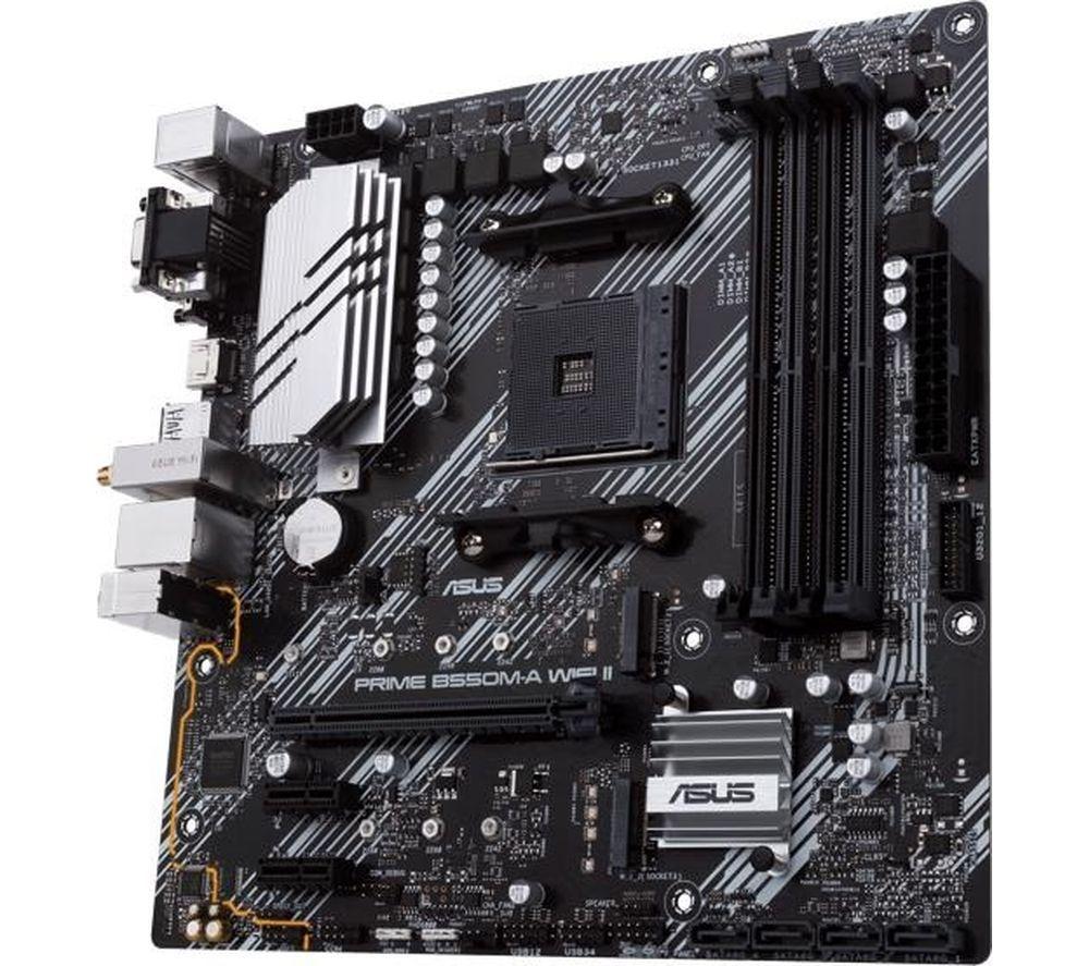 This microATX board from ASUS is designed to handle powerful components. It's ready for a 5000 Series AMD processor, so you can put all those cores to work. You can plug in up to 128 GB of DDR4 RAM and blaze through your workflows. And with PCIe 4.0 and you can have high-speed storage that won't make you wait around. Good to know - With Gigabit Ethernet and WiFi 6 you'll have super-fast and rock-solid internet connection - To make sure your hardware stays cool under load, there's onboard heatsinks and 4 PWM fan headers - Connect RGB LEDs and sync them with your components and peripherals using ASUS Aura Sync