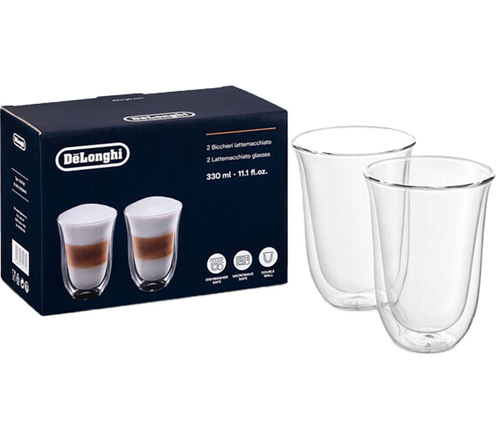 Good to know- Just the thing for your morning latte, these DeLonghi glasses are double walled to keep your drink warmer for longer- Made from hand-blown borosilicate glass, you can serve up both hot and cold drinks - the design keeps out pesky condensation too- They hold 330 ml, just the right size for a latte from your bean-to-cup machine- You can simply pop them in the dishwasher for easy clean-up
