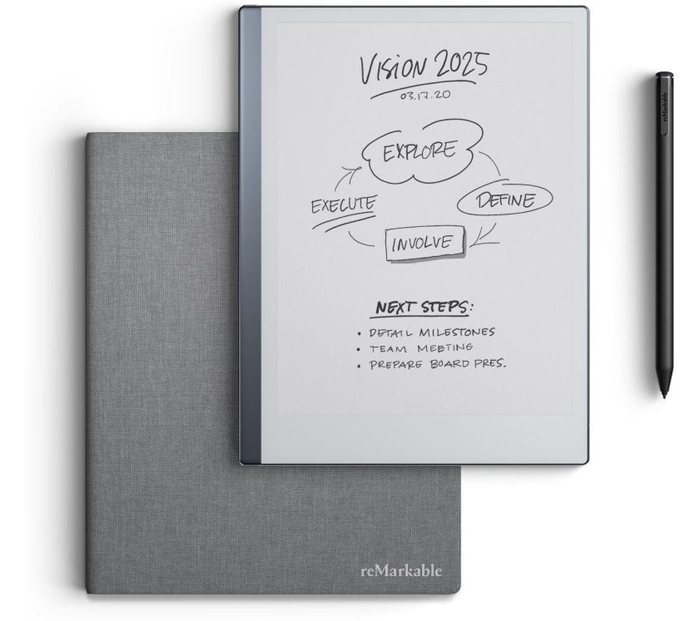 The reMarkable 2 brings the best of both worlds - mechanical and digital. It feels just like you're putting pen to paper, but it lets you save or share ideas in seconds. Jot down notes and sketch out concepts on a digital notebook that keeps everything organised. There's no notifications or pop-ups, so you can focus on what's important while you work. Convert handwritten notes to typed text in 33 languages, which makes sharing even easier. And there's a 100-day Connect subscription included - that means unlimited cloud storage and simple syncing. Good to know - Marker Plus is designed to give you the perfect handwriting experience on the reMarkable 2 - Misspelled a word? Just flip the Marker Plus over and erase like you would with a pencil- The polymer weave Folio Case protects against knocks and bumps while you work and travel - Google Drive, Dropbox and OneDrive integration means you'll be able to access and upload documents without fuss or cables - Screen Share lets you connect to a big screen and use your reMarkable as a digital whiteboard - It's really handy for signing PDFs and annotating documents - There's no backlight or glare, which makes hours of reading easier on the eyes if you're using it as an ebook reader - Forget nightly charging - it's got 2 weeks of battery life