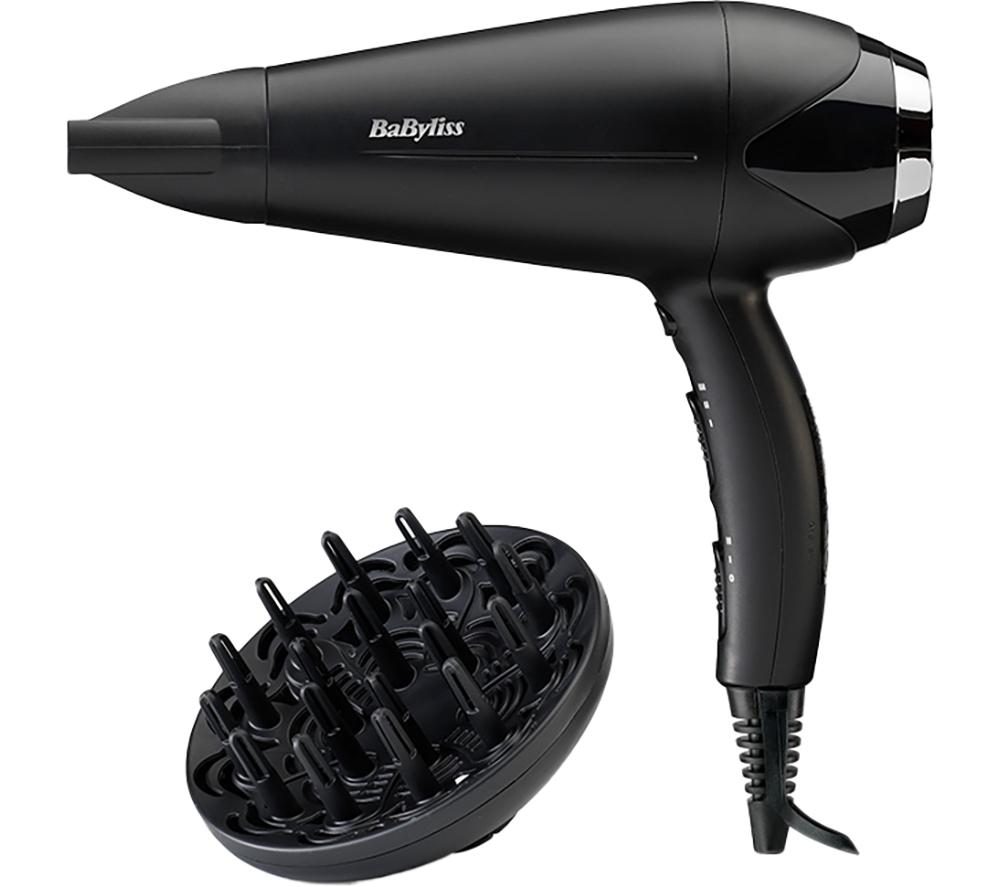 Get the salon look at home with this BaByliss hair dryer. Its powerful 2000 W motor means you can dry any length of hair in a jiffy. Heading out for a party? Its ultra-slim concentrator nozzle smooths and straightens your hair as it dries so you can forget about frizz. And if you're blessed with natural curls, the large diffuser attachment is perfect for adding extra volume and texture. Good to know - Pick from 3 heat and 2 speed settings to suit your hair- Ionic technology conditions your hair as you use it keeping you locks healthy and shiny- Take your professional stylist with you - it's lightweight and easy to carry