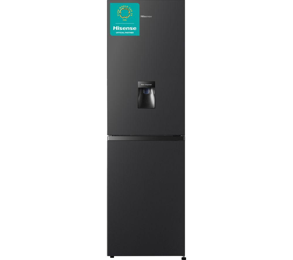 Tired of always having to defrost your freezer? This Hisense fridge freezer's Total No Frost technology evenly distributes cold air inside to stop ice and water from building up. The wine rack can hold up to 5 bottles and stops them rolling around the shelves - perfect if you're expecting guests. And with its built-in water dispenser, you can enjoy a refreshing glass of chilled water any time with no fixed water connection needed.Good to know- The doors are reversible so you can swap them around to best suit your kitchen layout- A soft LED light inside the fridge lets you see everything clearly - it's more energy efficient than standard fridge bulbs too- The 90° door design lets you pull out the drawers fully, even when the door is only partially open- You can set the fridge's temperature via the adjustable control dial found on the back panel _PLEASE NOTE:- Use in outbuildings: This refrigerator is not designed to be used in an outbuilding - both your food and the appliance can be damaged. Do not use it in any unheated area.- Reversible door hinges: This appliance has a reversible door. Please consult a qualified installer, such as one of our Tech Experts, to carry out door reversal - select the door reversal service when you add this product to the basket.