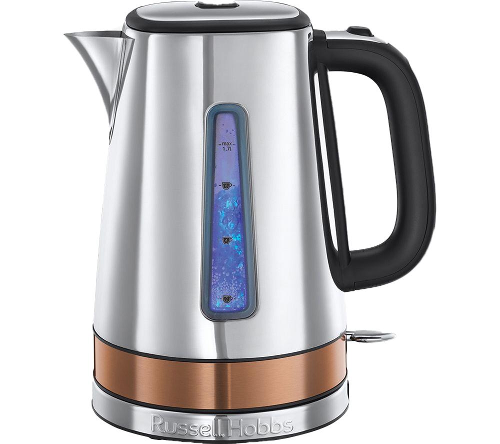 - The Russell Hobbs Luna kettle lets you enjoy a quick brew with its rapid boil zone in just 45 seconds - Its 1.7 litre capacity means it's perfect for family and friends - Brew your cuppa in a flash thanks to its 3000 W of power - Enjoy mess-free pouring every time with the perfectly designed spout - Its illuminated water window lets you know when it's switched on - The 360° base lets you place the kettle back on its base from any direction - Its cord storage keeps your counter tidy