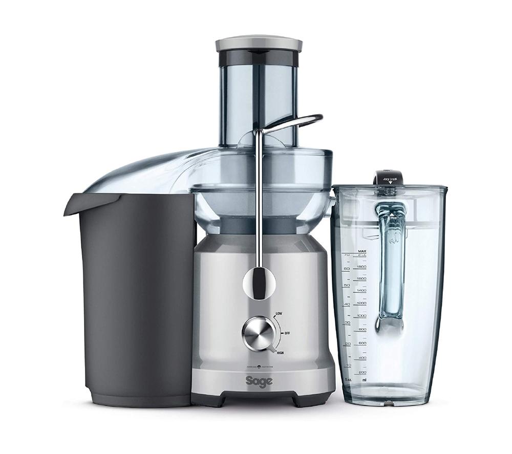 Squeeze every drop of flavour out of fruits and vegetables with the Sage BJE430SIL the Nutri Juicer Cold. It uses a cold extraction system and mesh filter to preserve the vitamins and minerals.A powerful motor together with an extra-wide feed chute mean you'll be serving healthy breakfast drinks in a matter of seconds. Just pop in your fruit or veg and the inedible parts get separated out.Want to add carrots or beetroot to the mix? The motor can easily handle even the toughest vegetables. Try the nozzle attachment to juice directly into a glass.You can make up to 2 litres of juice at a time. And if you've got juice left over, just seal the jug with a lid to store it in the fridge for later.Time to tidy up? Most of the juicer parts such as the stainless-steel filter and puree disc are both removable and dishwasher-safe.
