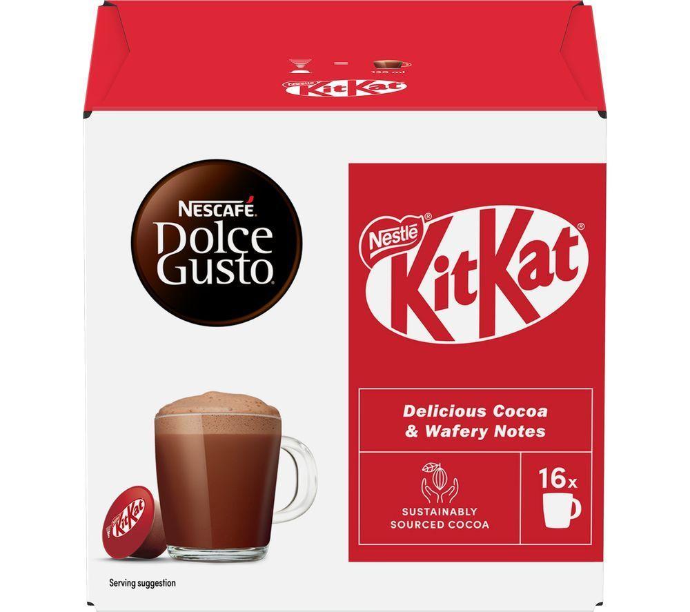 - Enjoy the iconic taste of KitKat as a delicious rich, creamy hot chocolate drink - These pods are made for your Nescafe Dolce Gusto coffee machine - The cocoa is sustainably sourced, so you can feel good about every cup