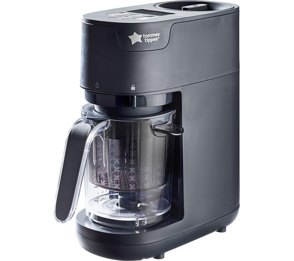 Simplify your little one's meal prep with this Tommee Tippee 6-in-1 baby food maker. Steam, blend, chop, reheat, defrost and sterilise at the touch of a button. It can handle different textures, from smooth purées to chunky bites, all while preserving nutrients and flavour. Perfect for weaning your baby on to solid foods. The large 500 ml blending jug lets you prepare fresh portions quickly. And the QuickCook function makes it easy to batch cook multiple meals for the week ahead.Good to know- The jug, lid and basket are dishwasher safe for a fuss-free cleanup- You can store prepared meals in the included weaning pots for convenience- The weaning spoon has a soft tip so it's safe for your baby's delicate mouth