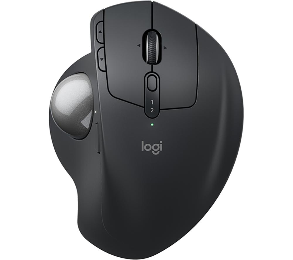 The MX Ergo S is a trackball mouse - that means you don't move your wrist, just your thumb. Its ergonomic 20-degree tilt angle will keep your hand and wrist in a natural position. So you stay comfy during long work days. You can have it connected to 2 devices and switch between them using the Easy-Switch button. Perfect for boosting your productivity. Good to know - It charging using the USB Type-C port and a single charge gives you up to 120 days of use - The quiet click button mean you won't get dirty looks when you work in a library - Use the Logi Options+ app to customise the 6 programmable buttons - For connectivity you can choose between Bluetooth and the Logi Bolt wireless dongle - Work across multiple devices and operating systems with the FLOW technology (Logi Options+ app required)