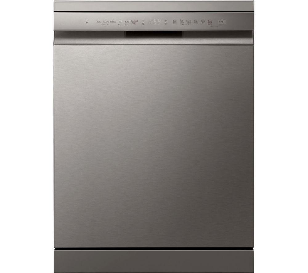 This LG dishwasher lets you wash what you need, when you need it. With the QuadWash system, even the dirtiest of dishes come out spotless the first time. It sends powerful streams of water into those hard-to-reach areas. Got a mixed load? Gently clean your delicate glasses and blitz heavier pots and pans in the same wash with Dual Zone. And the auto door opens automatically at the end of the cycle. It lets hot air escape so your dishes dry naturally every time.Good to know- The EasyRack Plus system lets you fit more in at one time - save time and energy by washing fewer loads- The Inverter Direct Drive controls water circulation and spray intensity and runs quietly too- Download the LG ThinQ app and control your dishwasher from your phone - personalise settings and even download new wash programs