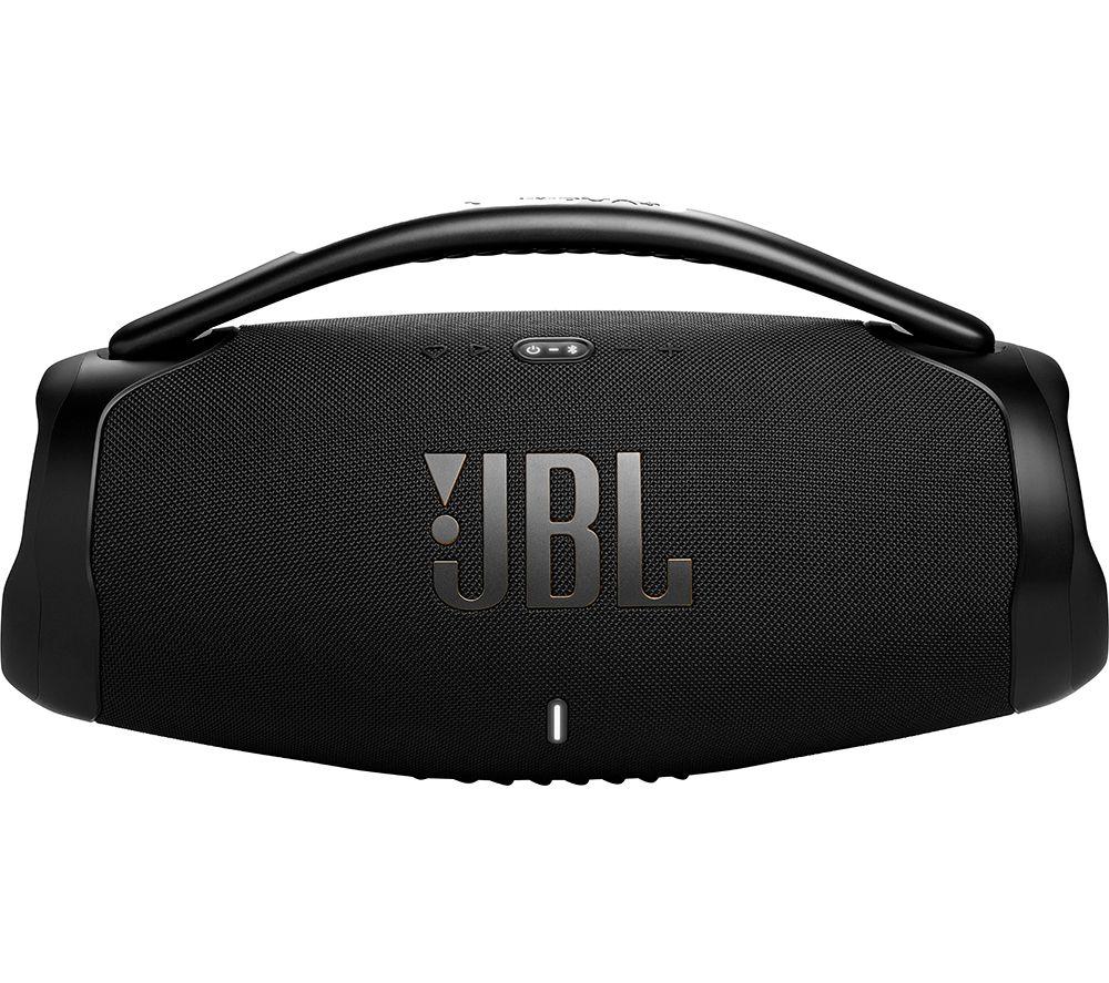 Let's face it, your phone speaker isn't going to get anyone in the party mood. The JBL Boombox 3 is here to save the day. And now that it's got WiFi, the dancing doesn't have to stop when your phone rings. Relax, leave your notifications on, and just stream music straight from Spotify Connect, Apple AirPlay and more. Blast it loud with 3-way speakers, including a dedicated subwoofer. You'll hear every song loud, clear and with absolutely booming bass. It's dust and waterproof, so that's a yes to music on the beach or in the rain. And it'll even work overtime as a powerbank, so you can charge your phone if you need a taxi home.Good to know- Away from internet? Fear not - you've still got that classic Bluetooth option- If you really appreciate your music and movies, you'll love immersing yourself in 3D Dolby Atmos sound- Whether you're listening in the shower or by the pool, the two self-tuning mics will adapt the sound to your surroundings- It'll keep you company for a full day under the sun because the battery lasts up to 24 hours- There's a sturdy metal handle on the top, so you can easily just grab it and bring it with you when going out- Customise EQs, playlists and all that jazz using the JBL One app____Please note: A subscription to a high definition music service is required in order to listen to immersive music in Dolby Atmos.