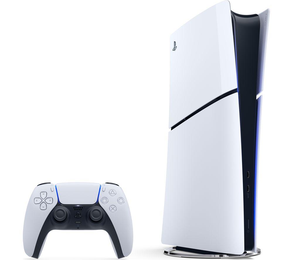 The new PS5 is slimmed down, but it's still just as fast. It's 24% lighter and 30% smaller than the original - so now it actually might fit in that tight spot under the telly. And even though it's little, it still packs a punch. Jump in with shiny 4K Ultra HD graphics at up to 120 fps for silky-smooth life-like action. There's a chunkier 1 TB SSD too, which gives you loads of space for your favourite titles. An extra USB-C port lets you charge a couple of controllers at once, so you're ready for some couch co-op.Good to know- If you want to start playing physical games down the line, you can just add the Ultra HD Blu-ray Disc Drive (sold separately)- The DualSense controller uses haptic feedback and adaptive triggers that make you feel part of the game- Ray tracing and HDR support bring every scene to life with hyper-realistic lighting and vivid colours- 3D audio puts you in the thick of the action whether you've got a headset or use your TV speakers- PlayStation Plus subscription lets you team up with friends and battle millions of players worldwide