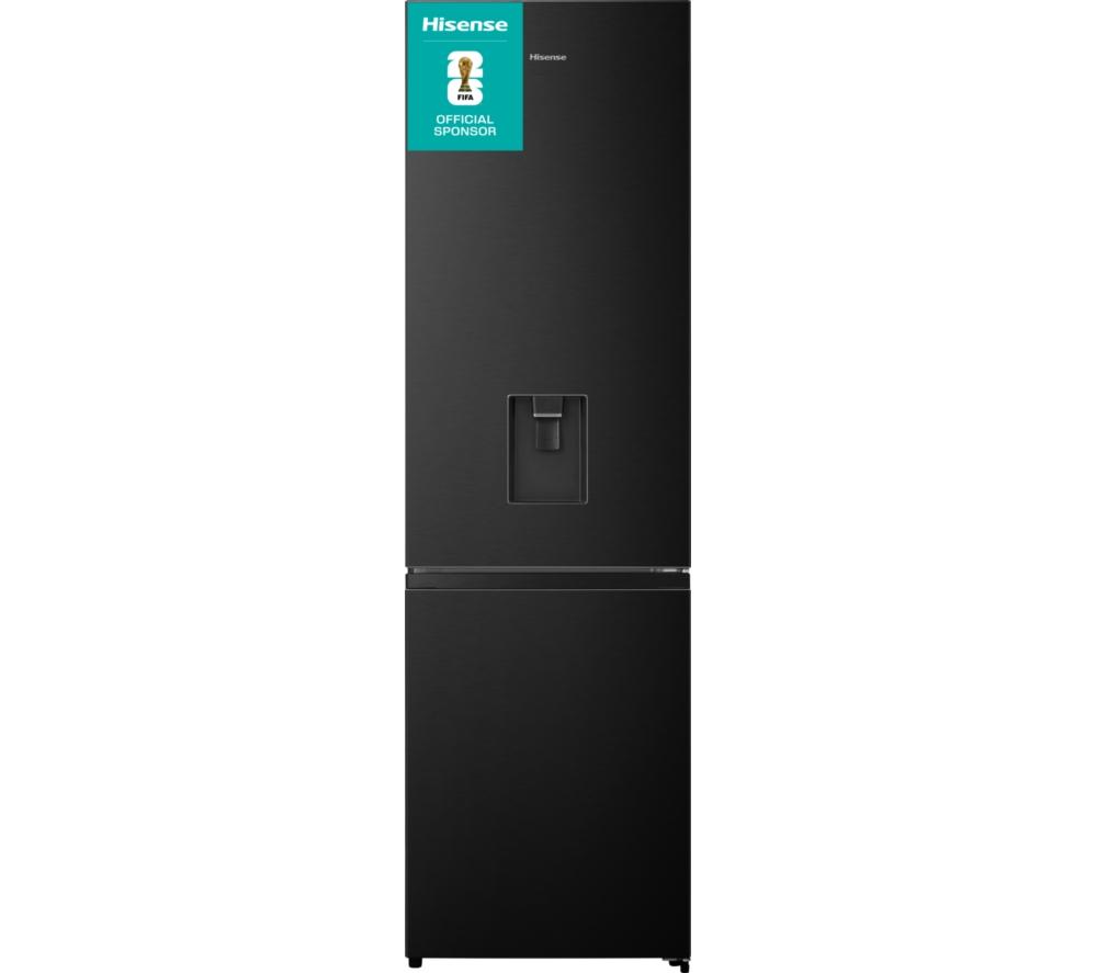 The non-plumbed water dispenser on this Hisense fridge freezer gives you perfectly chilled water at the push of a button - great for after a workout or just to go with dinner. Expecting guests? The wine rack can hold up to 5 bottles and stops them rolling around the shelves. The Fresh Box keeps your food fresh for longer and lets you control the humidity based on what's in it. Now there's no excuse for not getting your 5-a-day!Good to know- The doors are reversible so you can swap them around to suit your kitchen layout- Total No Frost technology evenly distributes cold air inside and prevents ice and water build-up- The LED display and temperature controls make it easy to control your fridge freezer- A soft LED light inside the fridge lets you see everything clearly - it's more energy efficient than standard fridge bulbs too_PLEASE NOTE:Use in outbuildings: This refrigerator is not designed to be used in an outbuilding - both your food and the appliance can be damaged. Do not use it in any unheated area.Reversible door hinges: This appliance has a reversible door. Please consult a qualified installer, such as one of our Tech Experts, to carry out door reversal - select the door reversal service when you add this product to the basket.