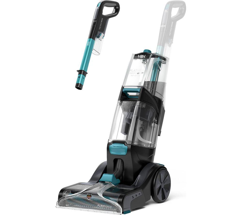It can be tricky to keep carpets clean with pets around. This Vax SmartWash and the antibacterial solution kills over 99% of bacteria - you and your furry friends can enjoy a clean, comfortable home. Its Motion Sense Technology gives your carpets a deep clean every time. It washes when you push it forward and dries when you pull it back. Simple! And the pre-treatment wand makes light work of stubborn stains, so those muddy paw prints will be gone quicker than you can say “Time for walkies!”Good to know- The Pet Stain & Odour Remover will leave your carpets looking like new and smelling fresh as a daisy- Dry your carpets in just an hour thanks to Heatblast Technology - it uses powerful extraction and warm air to speed up drying- The Advanced FLEXCORE brush bars get right into the carpet fibres for a really deep clean- Freshen up dog beds, car interiors, stairs and more with the SpinScrub Brush - it rotates automatically so there's no need to scrub