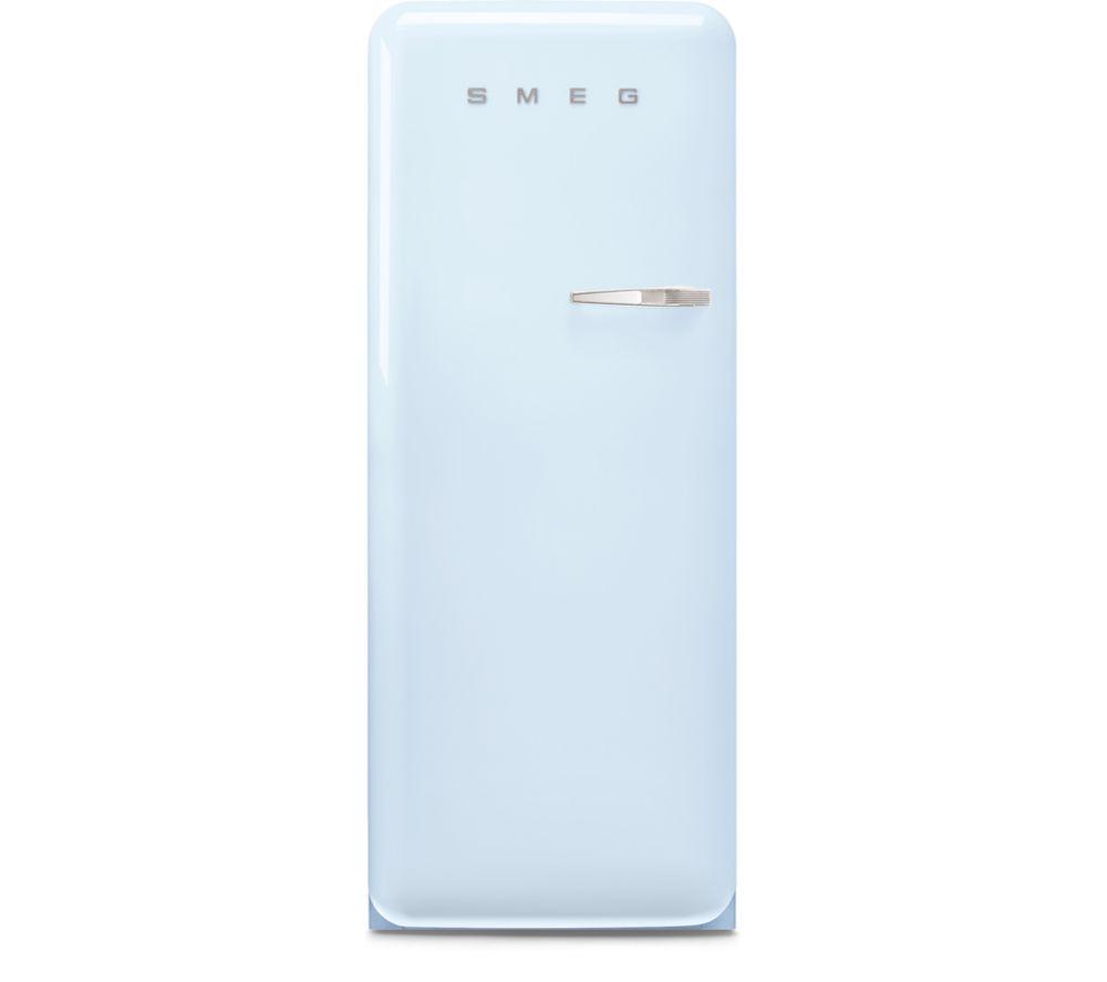The Smeg FAB28LPB5UK Tall Fridge looks like it came straight from the 50s. With bright gloss, chrome finishes and round contours, it's quite the eye candy. But on the inside you'll find a modern appliance with up-to-date performance.With 267 litres of fridge space you get plenty of storage for a family-sized shopping list. There's even an ice box with a 26-litre capacity - perfect for storing frozen meals and tubs of delicious ice cream.Fan coolingThe fan assisted cooling keeps your groceries evenly cool, so everything gets chilled faster and stays fresh longer. This prevents ice build up in the fridge, so you don't have to bother with defrosting.Lifeplus 0°C drawerAt the bottom of the fridge you'll find a controllable temperature drawer. Ranging from -2 to +3°C, it's perfect for foods that have a shorter shelf life - such as fish, meat or cheese._PLEASE NOTE:Use in outbuildings: This refrigerator is not designed to be used in an outbuilding - both your food and the appliance can be damaged. Do not use it in any unheated area.Door hinged on right: Door reversal is not available on this product - please don't select door reversal service when adding this product to your basket.