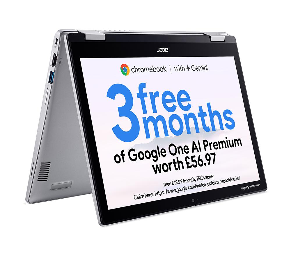 "Get stuff done with the Acer Spin 312. Its 12.2"" Full HD + IPS touchscreen provides amazing colours and wide viewing angles, and you can fold it 360° to turn your laptop into a tablet. Great both for work and for catching up on Netflix. It can run for up to 13 hours on a single charge, so you can leave the charging brick at home. And at just 1.29 kg, it won't weigh you down either. Good to know - ChromeOS is easy and safe to use and can run all your favourite apps from Google Play Store - The Intel® N100 processor is just right for everyday browsing, emailing and social networking - Browse, stream and download faster than ever before thanks to WiFi 6E - Starting up your laptop and multitasking will be quick with the 128 GB eMMC and 4 GB RAM - The HD webcam with temporal noise reduction will make you look great on group calls - With a USB Type-A, USB Type-C port, and an HDMI, you'll have plenty of ways to hook up accessories_ Intel, the Intel logo, Celeron, Intel Atom, Intel Core, Intel. Experience What's Inside, Intel Inside, the Intel Inside logo, Intel Unite, Iris, Pentium, Thunderbolt, the Thunderbolt logo, and Ultrabook are trademarks of Intel Corporation in the U.S. and/or other countries."