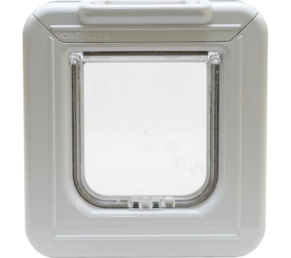 - This cat flap gives exclusive entry to your pet's unique microchip or Cat Mate I.D. disc (sold separately)- You can set the 4-way lock to allow in and out, in only, out only, or locked- The LCD display shows the lock status, cat location, and the time the flap was last used for up to 3 cats- Set the timer to control when you want the flap to lock and unlock- The brush sealed flap keeps out draughts and rain to keep your home cosy- It's suitable for up to 9 small- to average-sized cats