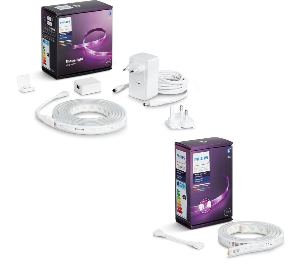 PHILIPS HUE White & Colour Ambiance Smart LED 2 m Lightstrip Plus Kit with 1 m Extension & Bluetooth - 3 m