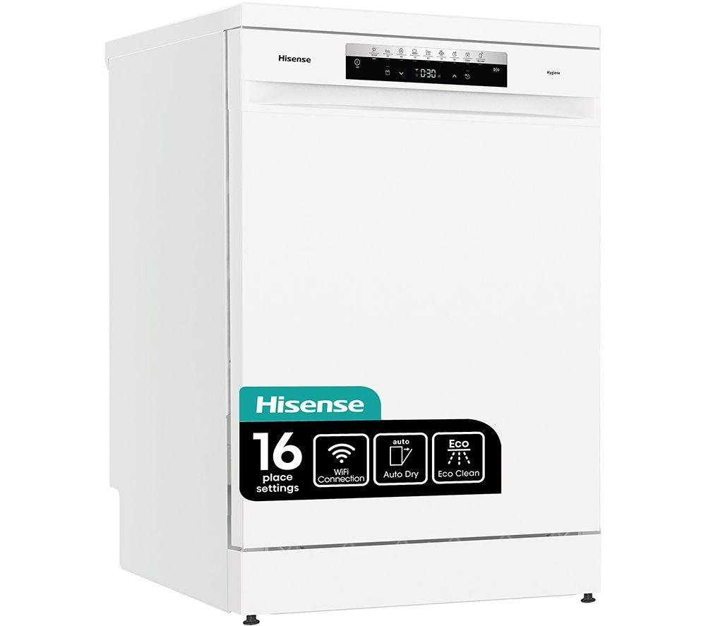Gurgles, hums and sloshes can get on your nerves when you're in the kitchen. If you fancy a quieter life, the Super Silent design of this Hisense dishwasher is great news. It uses sound insulation and an efficient motor so it's no louder than a whisper. You won't need to clean grime out of the filter - it's SelfCleaning, which means it keeps running efficiently too. And with Auto Dry, you won't need to grab a tea towel - it opens the door after every cycle to help steam escape and dry your items.Good to know - Be sure of super clean plates with the Hygiene program- The WiFi connection lets you change settings and start programs from the app- The 16 plate setting capacity means you've got loads of space to stack up the family's dishes- If you use a hot water connection, your dishwasher won't need to heat up water itself - you'll be able to cut down washing times and reduce energy consumption, which is always good news- If you need plates done in a hurry, the 15 minute quick wash is great for giving them a rinse- The cutlery tray lets you neatly separate your forks, knives, and spoons to make them clean and sparklyWhy we love it“Put down the marigolds! SelfCleaning automatically removes any grime that's clogging up the filter. So, you don't even have to get your hands dirty.” - Andrew, Product Copywriter
