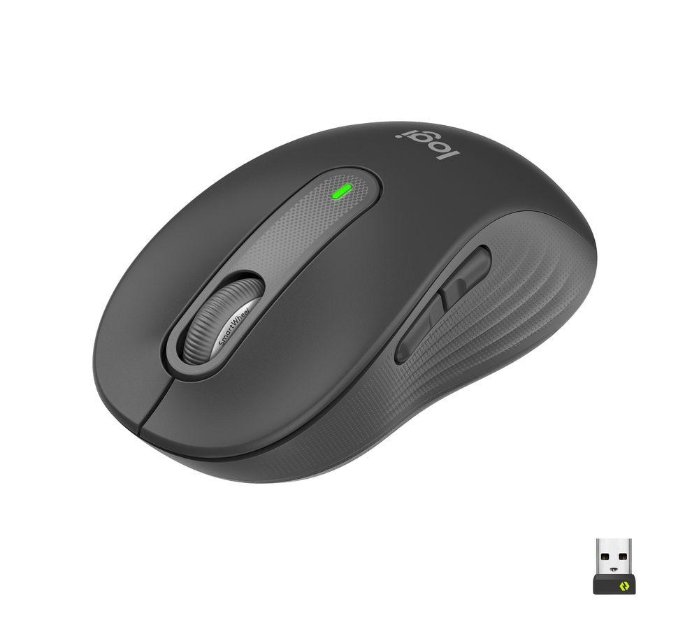 What we love- SilentTouch technology keeps your clicks super-quiet, so you won't disturb anyone while you're working- The SmartWheel offers two speeds, so you can switch to fast mode and scroll down long pages in no time- 2 programmable side buttons let you save favourite shortcuts and work faster, with fewer clicksGood to know- The mouse connects wirelessly over Bluetooth or with the USB receiver, so you can use it with almost any device- 2 years of battery life mean you won't have to worry about running out of power- The rubber side grips and contoured design make it comfortable to hold, whether you're left- or right-handed