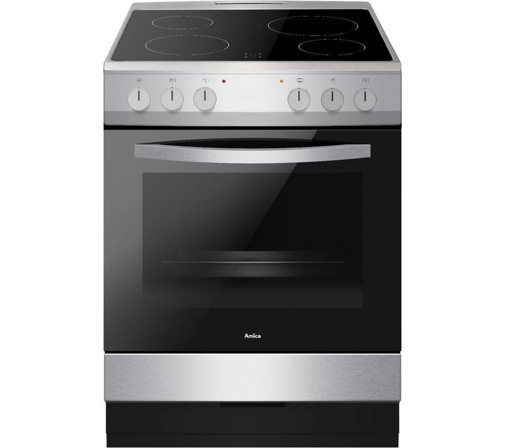 AMICA AFC601SS 60 cm Electric Ceramic Cooker - Black & Stainless Steel