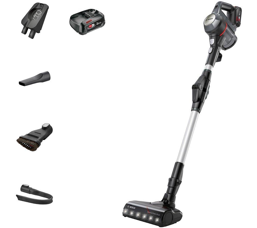 Enjoy cordless freedom as you spring clean with this vacuum. Weighing just under 3 kg, it's easy to carry up and down stairs without hurting your back. But don't let the compact exterior fool you - the Bosch TurboSpin motor along with the AllFloor DynamicPower brush head make it just as powerful as a corded vacuum. A bit dusty under the sofa? The unique FlexTube can bend 90º to reach under furniture, while the crevice nozzle attachment lets you get into every corner.Good to know- A single charge gets you up to 40 minutes of runtime - enough to clean your entire home- The PowerForAll battery is compatible with other Bosch 18 V cordless devices, so you can use it for your gardening and power tools, too- It comes with a variety of attachments for use on carpet, hard floors, or even upholstery- The RotationClean hygiene filter is super easy to clean - simply twist the filter, no washing or replacing needed- Convert it to an even lighter handheld unit - perfect for cleaning on top of furniture without tiring your arm- When you're done cleaning, a docking station is included for handy storage while charging