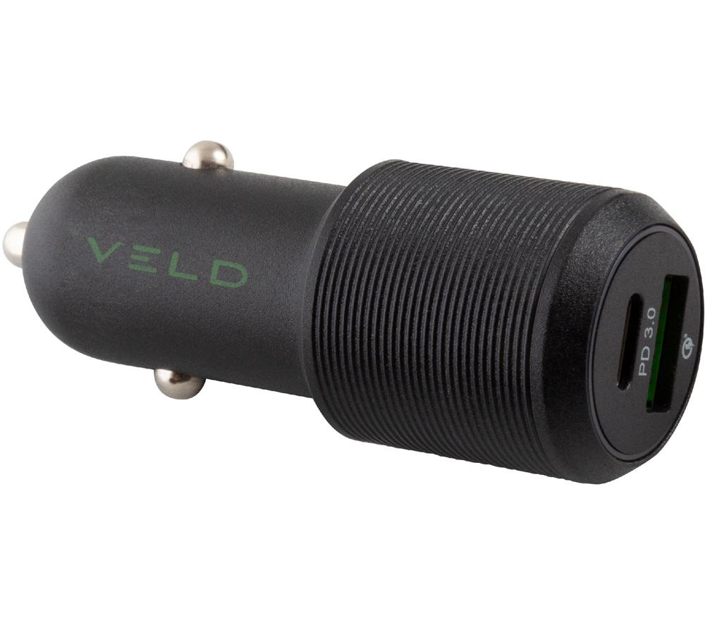 Hitting the road? Charge your phone on the go with the Veld VC48DG Universal USB Car Charger.Featuring two ports, you can charge a USB and USB Type-C device simultaneously. Perfect for if your passenger's phone needs a boost too.Phone, laptop or tablet, it's fully compatible with all USB devices. And you'll get to full charge in no time thanks to its fast and intelligent charging - up to 50% faster than a standard 5W charger.
