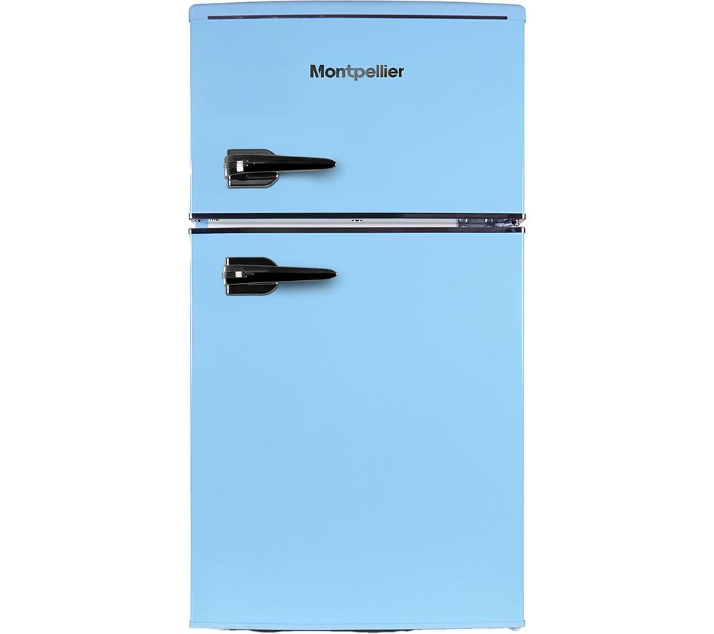 Good to know- This 84 litre Montpellier fridge freezer adds a bit of retro 50s style to your kitchen- Its undercounter design makes it a great choice for smaller kitchens- Stock up on your favourite juices and treats on the 2 shelves and in the door compartments- Delicious raspberry ripple or fresh cod fillets, store your frozen favourites in its 25 litre freezer- The salad crisper stops your fruits and veggies from drying out quickly, so you can shop less often- With auto defrost tech in the fridge, you won't have to worry about manually scraping icy build ups off the wall_PLEASE NOTE:- Use in outbuildings: This refrigerator is not designed to be used in an outbuilding - both your food and the appliance can be damaged. Do not use it in any unheated area.- Door hinged on right: Door reversal is not available on this product - please don't select door reversal service when adding this product to your basket.