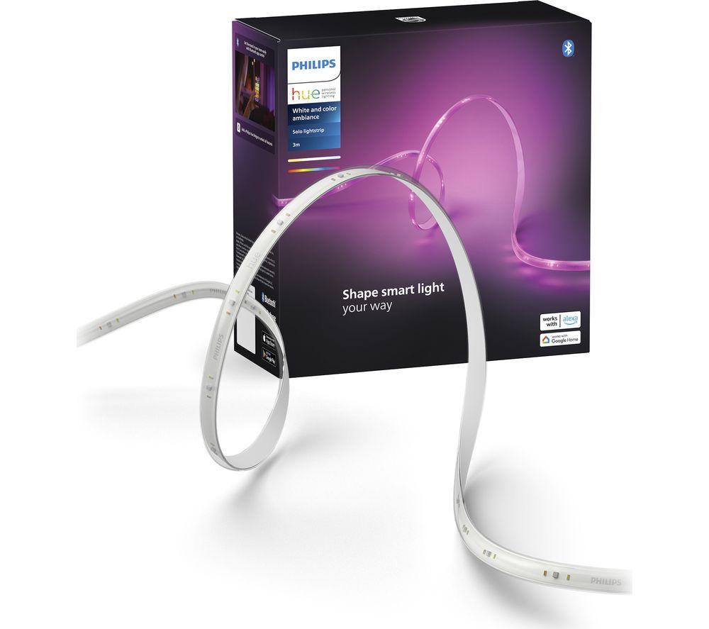 - Light up your space with this Philips Hue Solo lightstrip - it can be cut and bent for the perfect fit- Play around with millions of colours or preset light scenes to set the right mood- Control it your way with the Hue app, your voice assistant, or Hue smart accessories (sold separately)- Unlock away from home control, automations, and custom scenes with the Hue Bridge (sold separately)_______________________Please note: The Philips Hue Bridge (sold separately) is required for full smart functionality. This lightstrip is non-extendable.