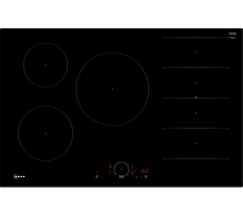 No two dinner times are the same. This Neff induction hob's intuitive Flex Zones let you merge different zones into one large one depending on what you're cooking. It even scans the shape and size of your pans and applies only the heat it needs. With the Extended Frying Sensor, you can forget about burning your meal. It constantly keeps tabs on your pots and pans to maintain a steady temperature so nothing burns or boils dry. And the Twist Touch controls let you pick your preferred cooking zone and power level with just a twist of your finger. Perfect scran every time.Good to know- Unlock your hob's full potential with personalised settings and cooking functions via the Home Connect app- Your hob, your rules - save and recall your most commonly used settings with the favourite button- Kick things up a notch with Power Boost and your pot of water will be boiling before you can say “I'm hungry”- Sync your hob and your compatible hood with Smart Hood Automatic and control everything from one placeELECTRICAL INSTALLATION: This product requires professional installation to a dedicated cooker circuit (identified by a big red cooker switch) by a qualified installer, such as one of our Tech Experts.