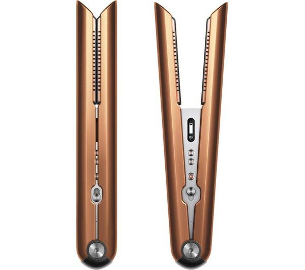Get a professional-looking style in the comfort of your home. The Dyson Corrale helps to care for your hair with far less damage thanks to the flexing copper plates. They shape around your hair while using less pressure and heat, so you can achieve the perfect style and keep your hair frizz- and flyaway-free. Thanks to its lower temperatures as compared to traditional ones - making for less colour fade in dyed hair, and healthier hair overall. With 3 precise temperature settings, it's designed for all hair types, whether it's curly or wavy.Good to know- The battery lasts for up to 30 minutes, perfect for your morning routine- It's a great travel companion too - use it safely in other countries thanks to its flight-ready design and universal voltage- The cordless design lets you reach those awkward angles without a trailing wire in your way- Easily check on the battery level, temperature setting and charging status on the OLED display- Working on a complex style that will take longer? Attach the magnetic 360° cord when the battery life won't give you enough time- It only takes 70 minutes to recharge, so it'll be ready to go when you need it- The balanced design means that you'll have maximum control while you're styling