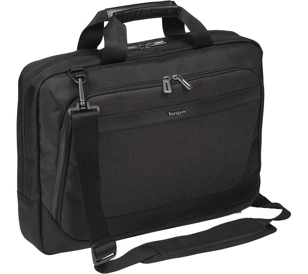 Good to know- This Targus carrying case's spacious main compartment can fit laptops up to 15.6”- Slip in everything from pens and keys to your mouse in its front pocket organiser - You can either use the carry handle or the adjustable shoulder strap - whatever your prefer- It has padded compartments that protect your stuff from any bumps- Use the trolley strap to secure your bag on your suitcase, so you can travel hands-free